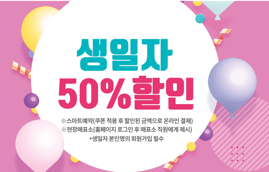 먼저 제휴카드 50%할인부터 알려드리겠습니다. 종일권만 해당됩니다.