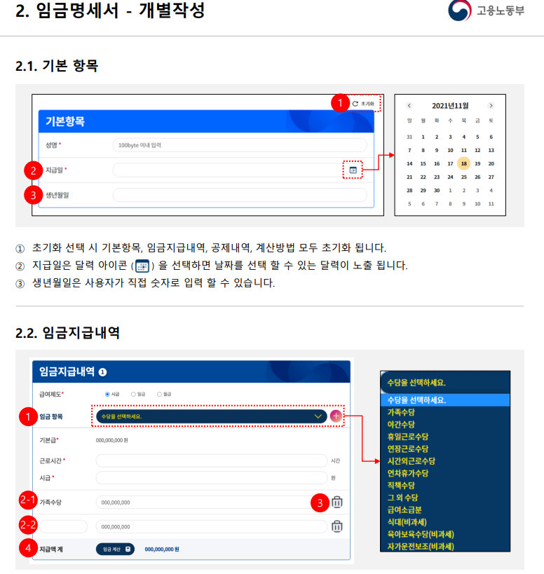 급여명세서를 함께 주는 것이 필수인 것은 당연히 알고 계시죠? 근로기준법이 2021년 11월 19일부터 임금명세서를 근로자에게 교부하는 것이 의무화되었었죠.