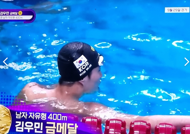 김우민 선수는 이번 수영 400미터 자유형에서 금메달을 확정냈고 자신의 기록과의 싸움을 벌였습니다. 마지막 10미터때는 김우민 선수 혼신의 힘을 다해서 3분 44초 36을 이뤄냈습니다. 물의 저항없이 유선형을 잘 만들어내며 압도적인 실력을 보여줬는데요. 터치 패드를 부시듯 끝까지 힘을 빼지 않았다고 합니다. 이번 항저우 아시안게임에서 수영 종목은 금메달 6개 은메달 6개 동메달 10개를 획득했는데요. 한 종목에서 이렇게 많은 메달을 딴 것은 정말 자랑스럽습니다. 역대 최고 2010년 아시안게임을 넘었습니다. 다음 파리 올림픽도 기대되는데요.
