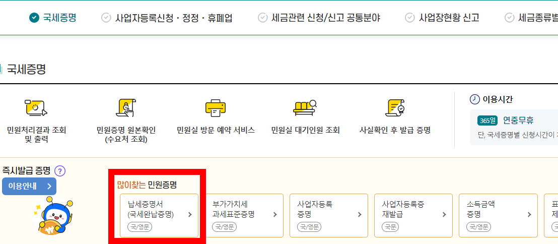 은행 업무 등에서 꼭 필요한 서류, 납세증명서, 소득금액증명원, 거주자 증명서 발급은 국세청 홈텍스에서 발급이 가능하니 아래에서 확인하셔서 민원업무에 도움 되셨음 합니다.