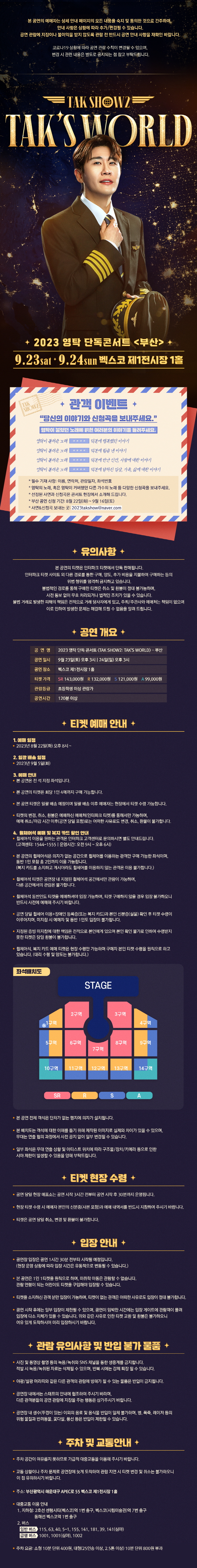 드디어 기다리고 기다리던 영탁의 부산 콘서트 일정이 나왔습니다. 2023년 9월 23일 토요일 오후3시 , 2023년 9월24일 오후3시 공연예정입니다. 단독 콘서트인만큼 많은 준비를 하셨답니다. 예매 티켓 정보와 장소를 알려드리겠습니다.