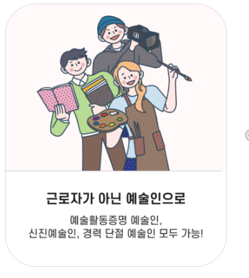 ■ 가입구분: 단기예술인(계약 1개월 미만 소득제한 없음), 일반예술인(계약기간 1개월 이상 월평균소득 50만 원 이상)