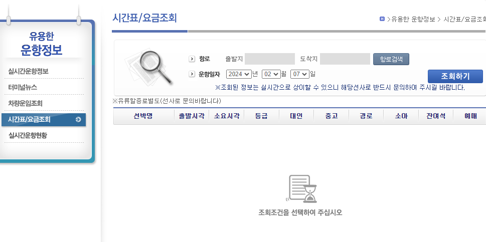 예약가능시간은 출항일 25일 전부터 출항 3일 전까지이며, 그 이후에는 예매만 가능합니다. 당일 출항은 예매가 불가능합니다.