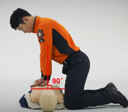 - 소아의 경우 : 1세 이하 혹은 체중 10킬로 이하 소아는 머리가 아래를 향하도록 허벅지 위에 엎드려 눕힌 후 손바닥 밑부분으로 등의 중앙을 세게 두리는 '등 압박'과 , 양쪽 젖꼭지를 잇는 선의 중앙 부위 약간 아래를 두 손가락으로 4cm 정도 깊이로 강하고 빠르게 눌러주는 ' 가슴악박' 반복합니다.