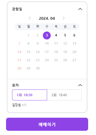 회차를 선택해주셔야하는데 1회 차는 18:30, 2회 차는 18:40분입니다.